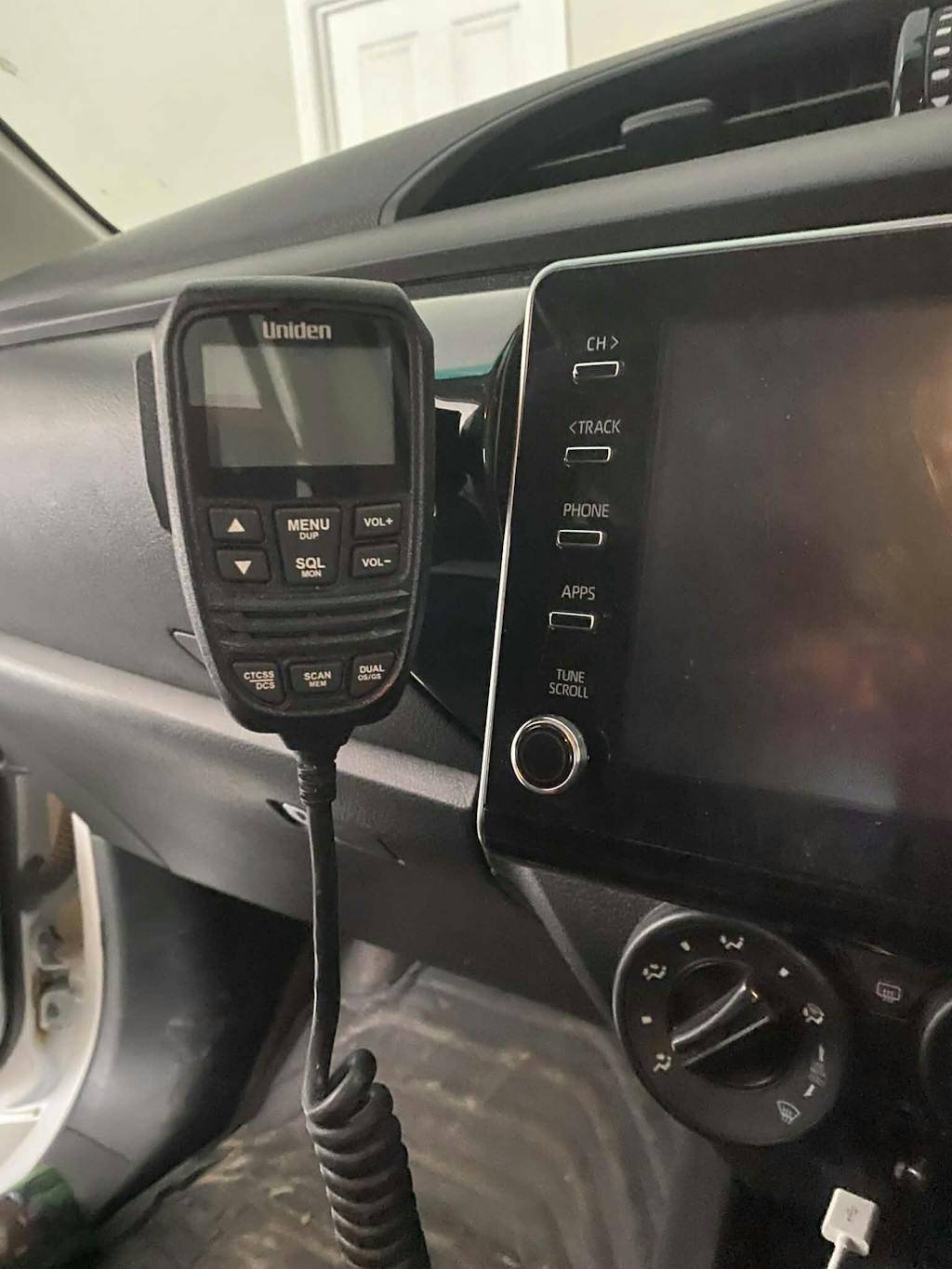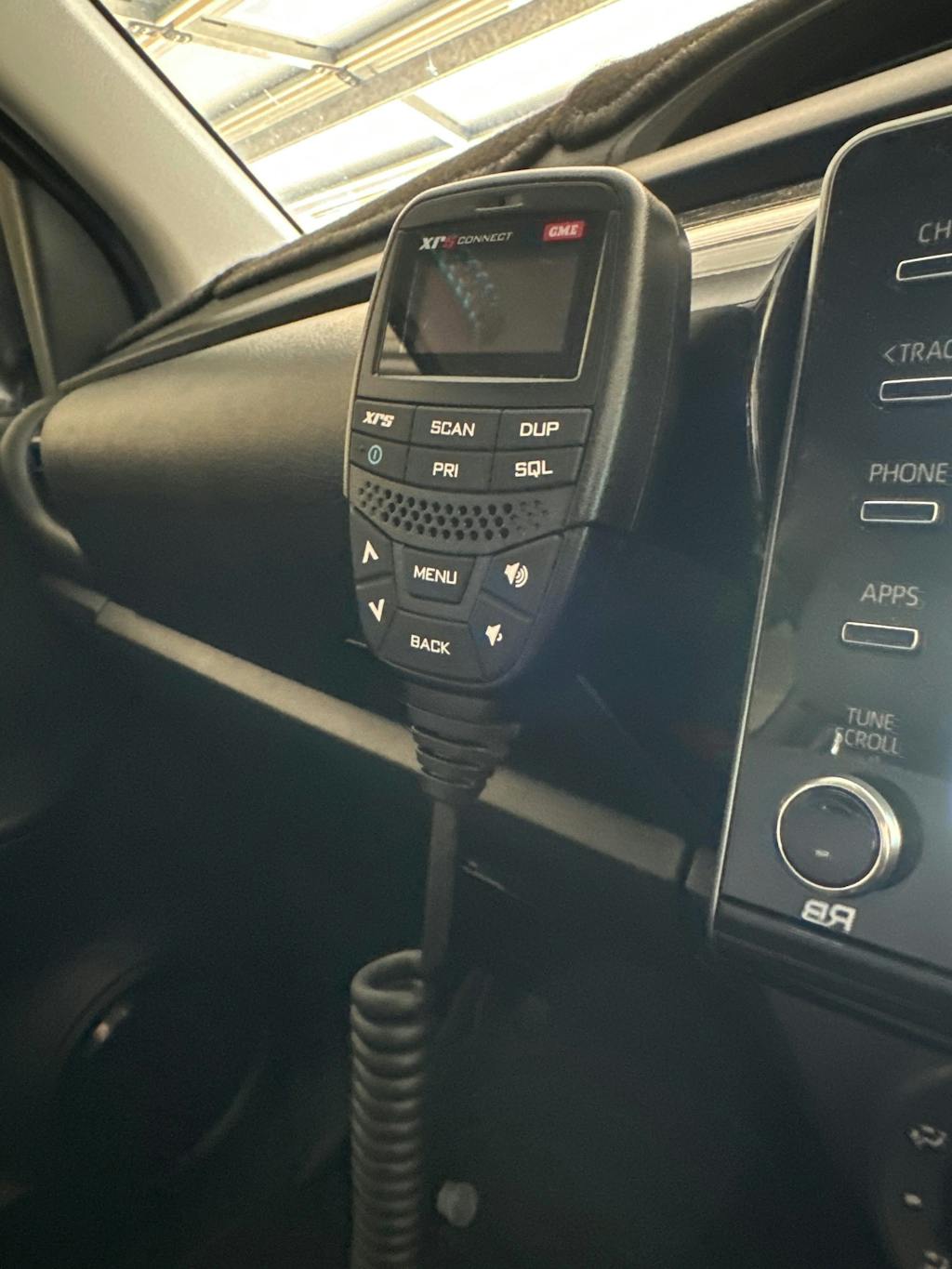 This bracket replaces the passenger seatbelt/airbag warning light to accommodate a GME magnetic microphone