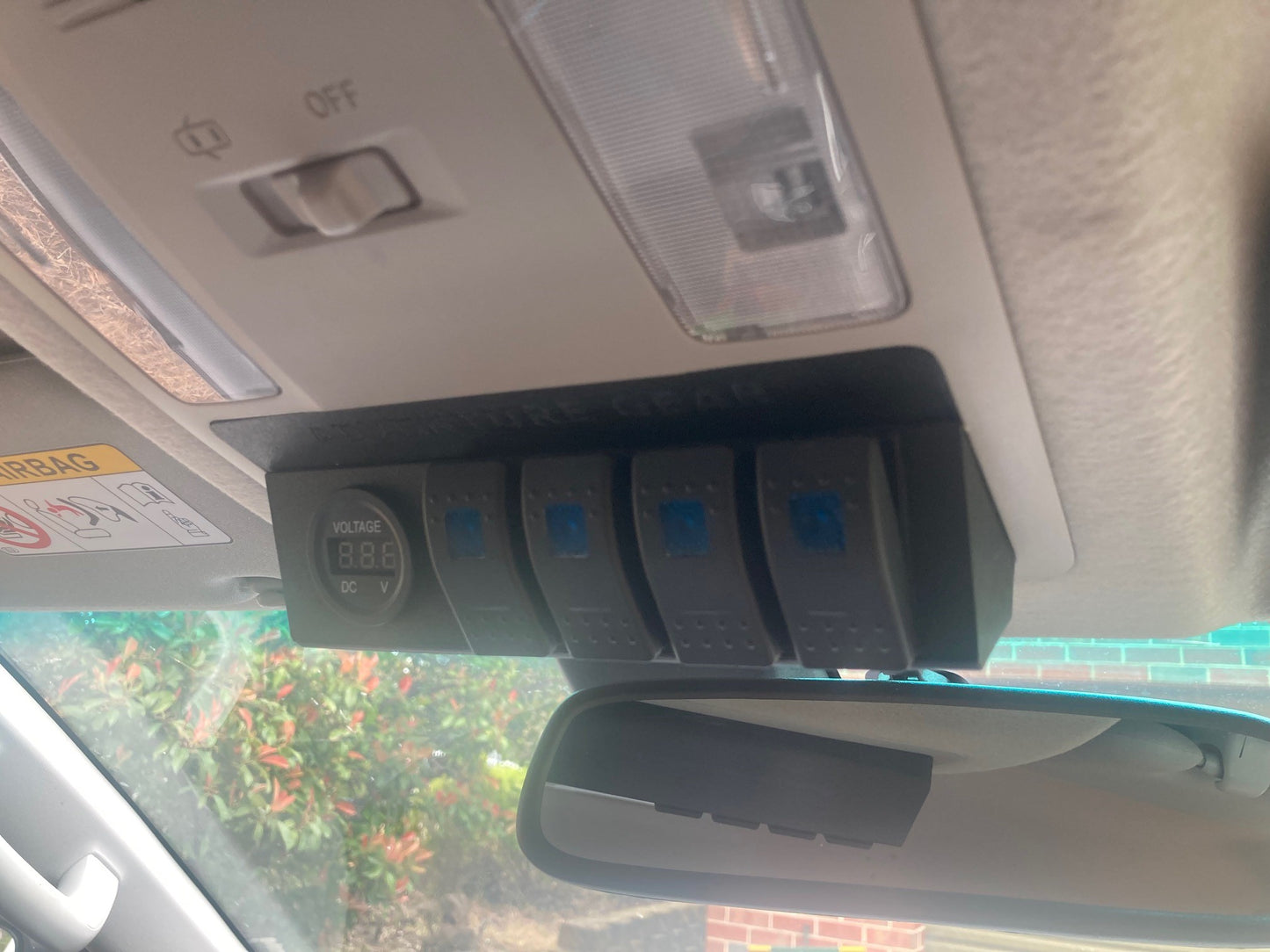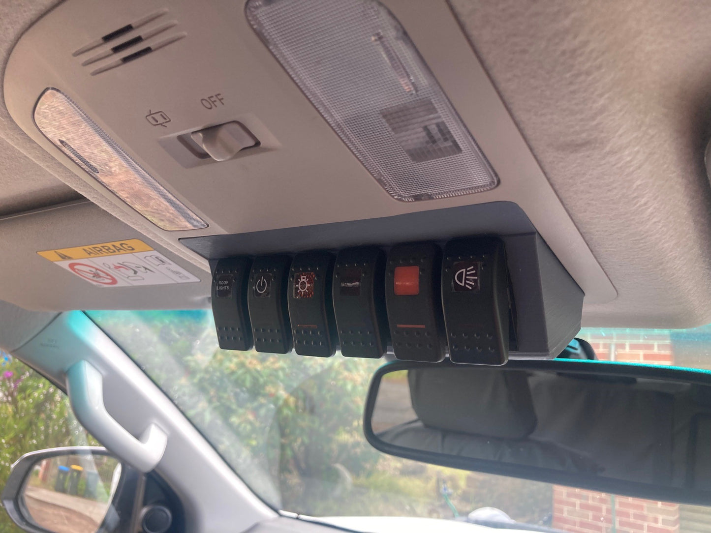 3D Printed PETG this console replaces the sunglass holder to add switches for accessories.