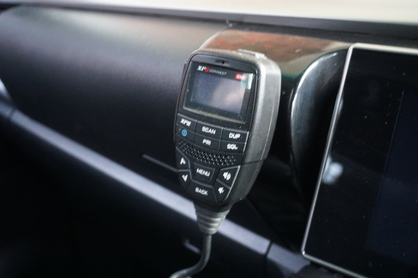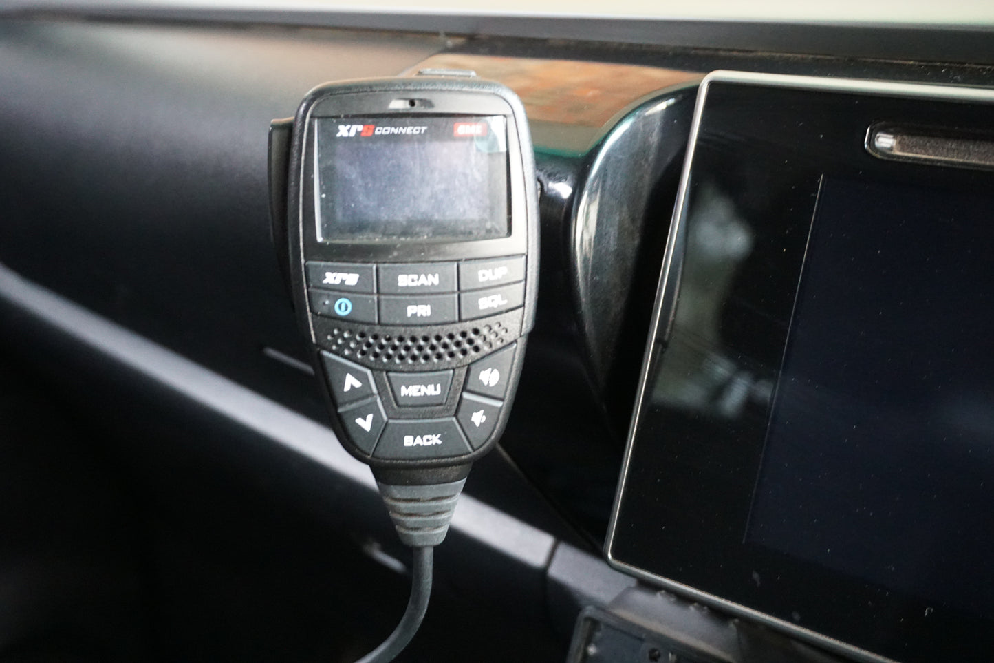 This bracket replaces the passenger seatbelt/airbag warning light to accommodate a GME magnetic microphone