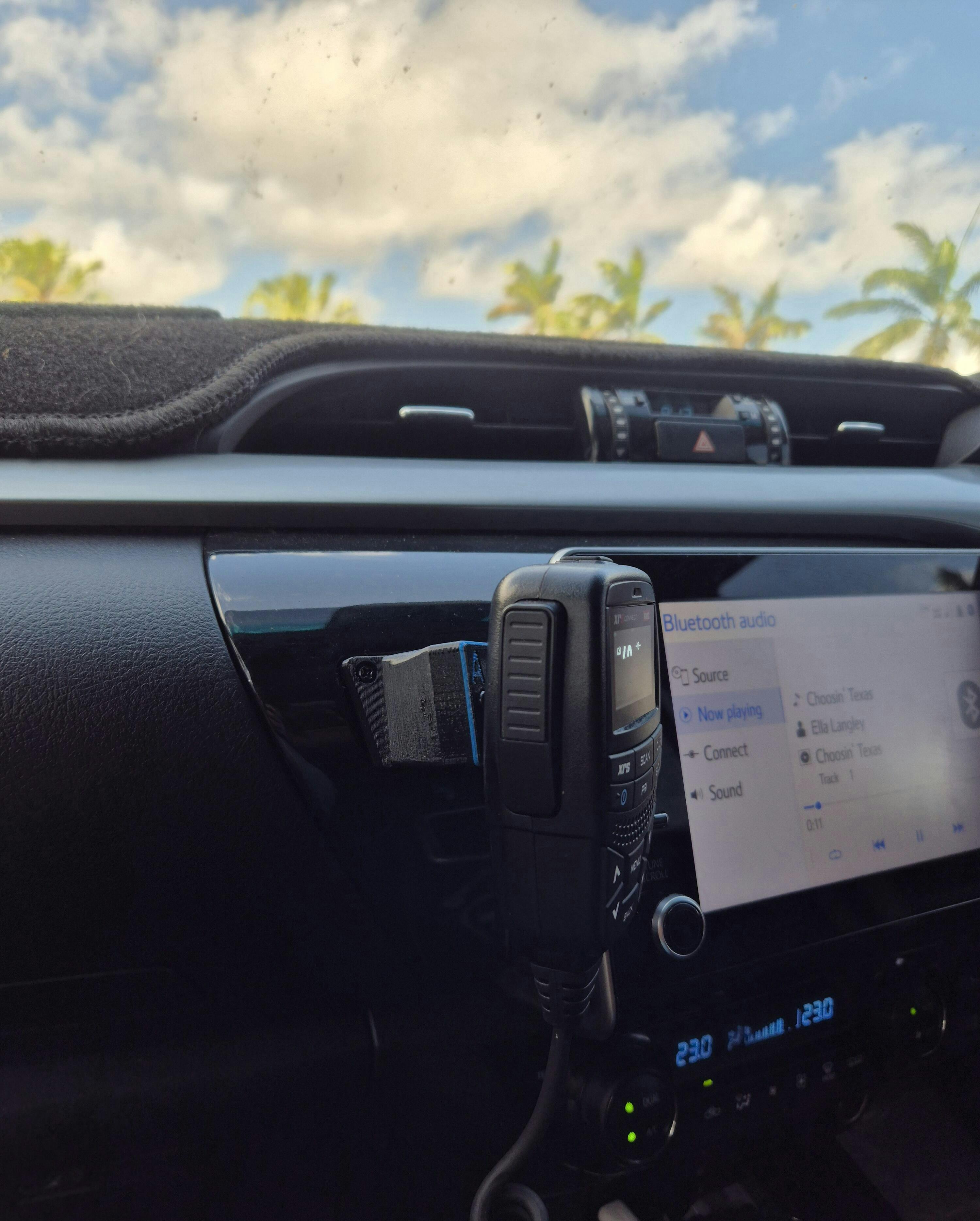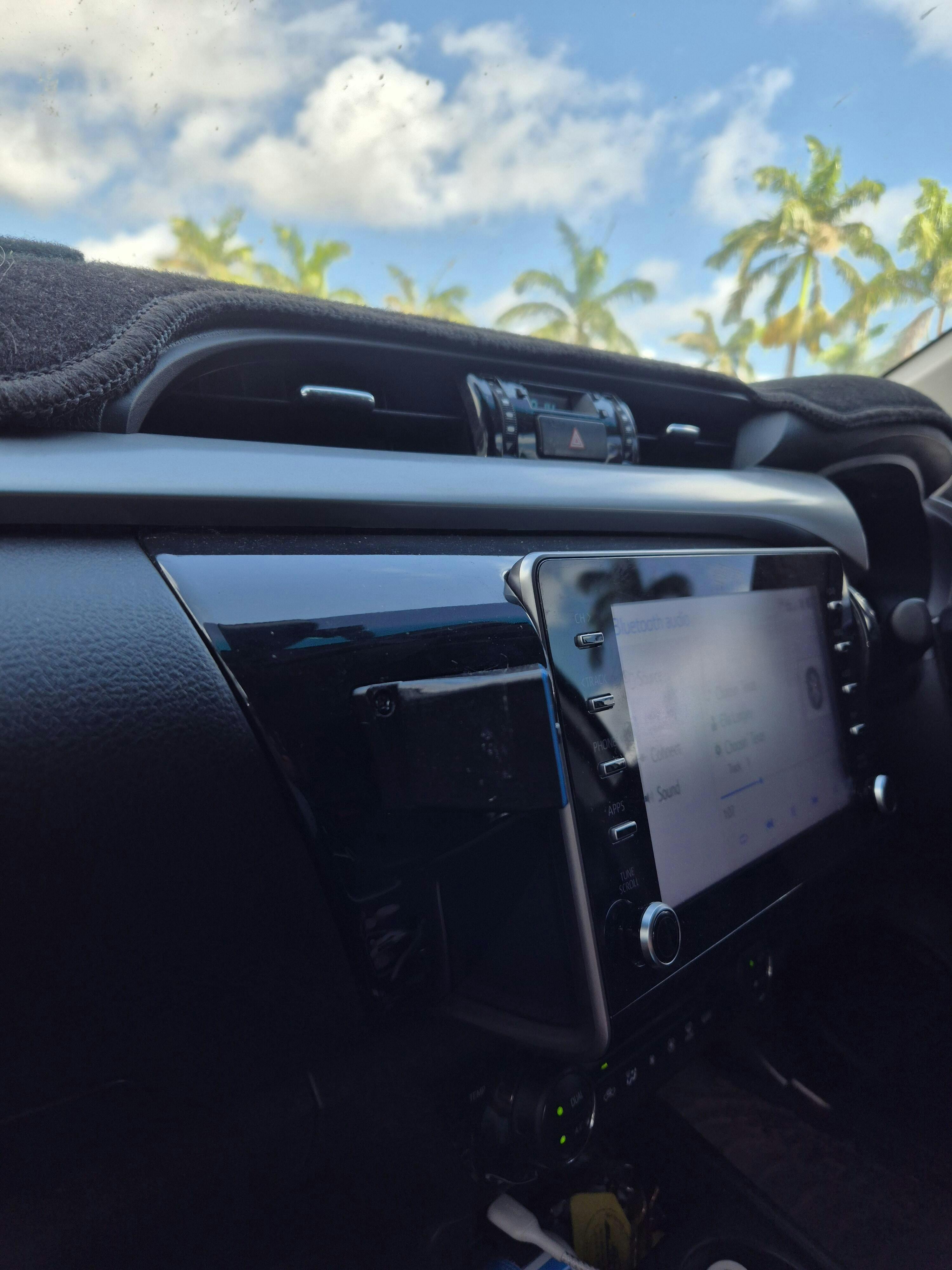 Utilising the GME base magnet this bracket is a neat solution without drilling into the dash.