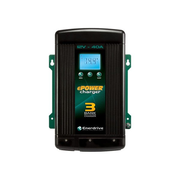 The Enerdrive ePOWER 40A AC Battery Charger is a fully automatic, “set and forget” charger. It is designed to quickly and accurately recharge your batteries using algorithms that help maximise service life. Multistage smart charging technology enables the charger to be connected to your battery banks permanently.
