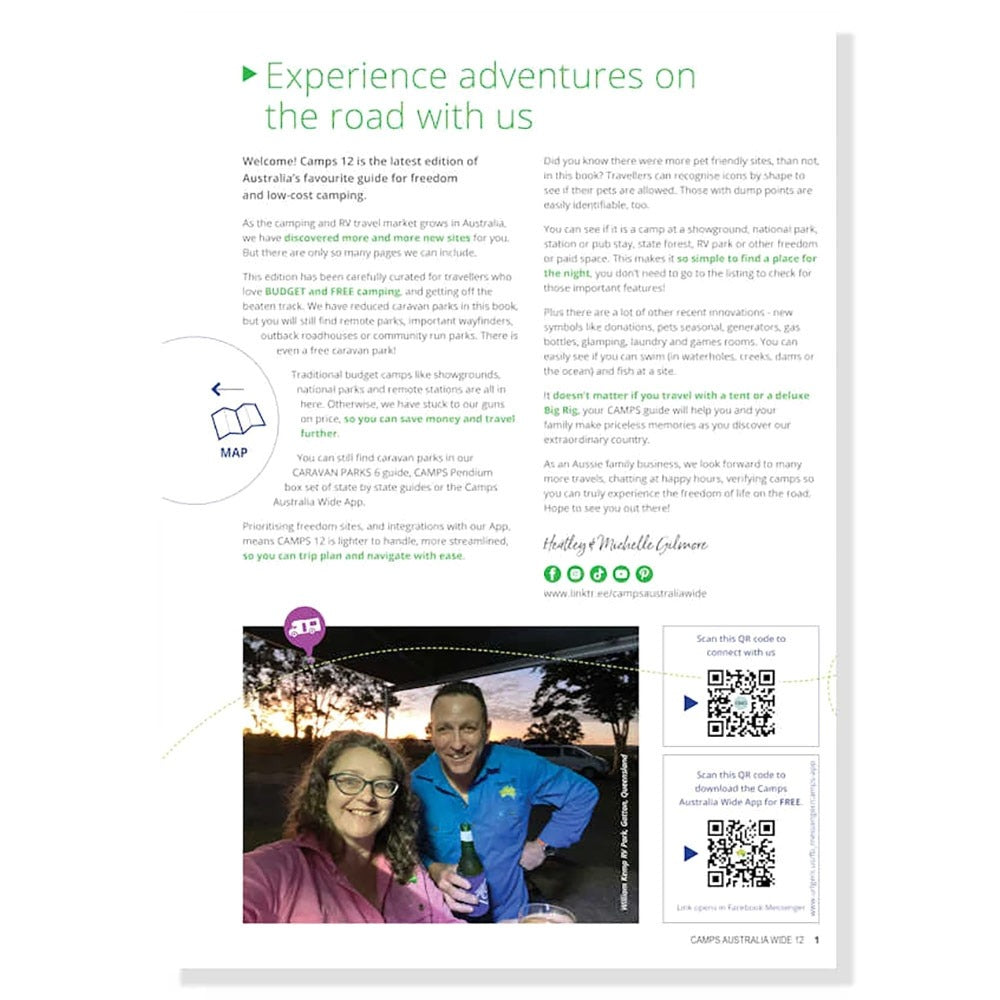 Camps 12 is the only guide you will need for free and low-cost camping across Australia, featuring verified free and budget camps. Travellers can tell if a site is free or paid, national parks, state forests, showgrounds, pub stays, RV parks, stations and farm stays on the maps and listings. Only remote caravan parks that are important wayfinders or outback roadhouses are found in this streamlined edition.
