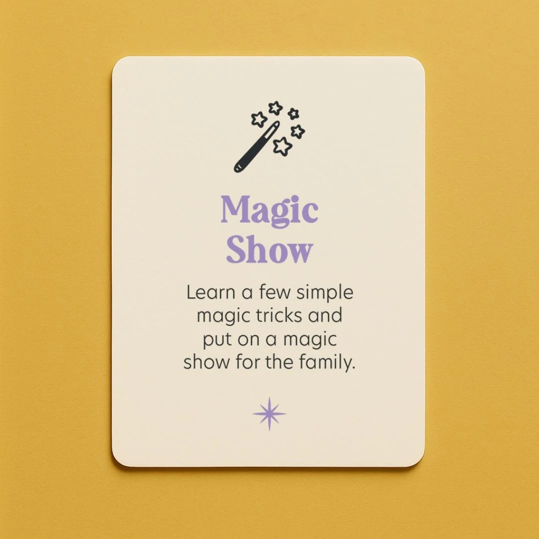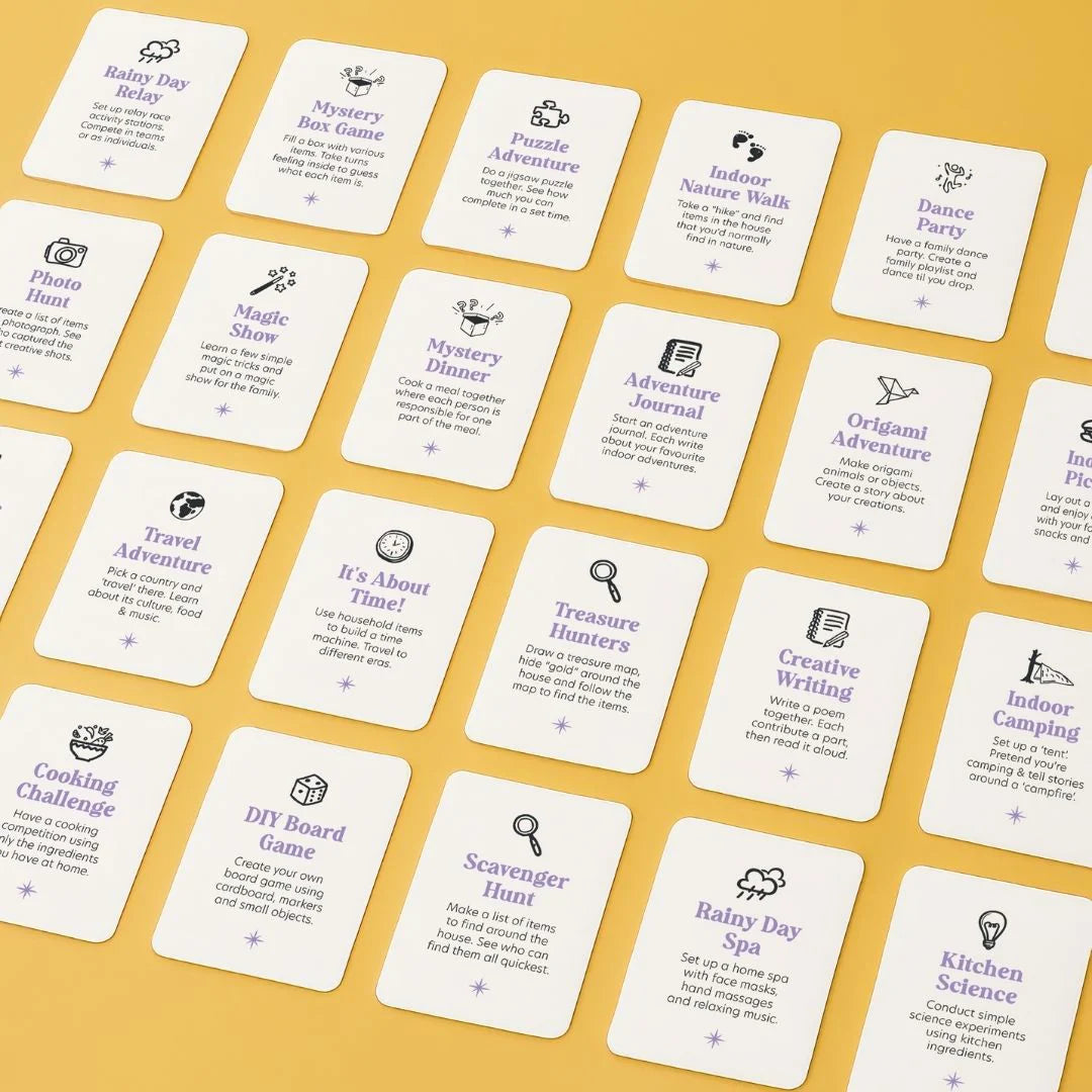 When the weather keeps you indoors, this deck is your go-to for creative and adventurous activities.