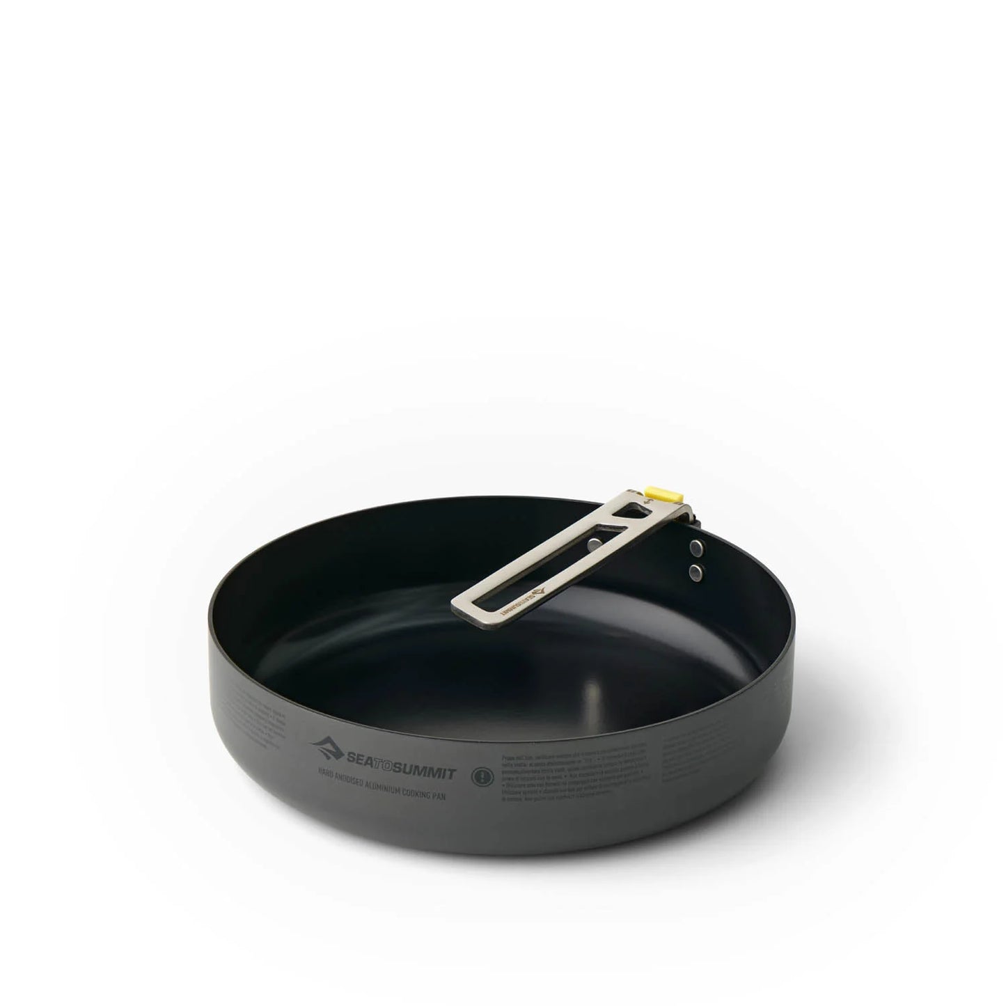 The Frontier Ultralight 20cm Pan uses high quality hard-anodised aluminium alloy for efficient heat transfer and a ceramic non-stick coating. A Click-Safe handle provides a solid grip for everything from flipping pancakes to firmly holding while cleaning up. Perfect for frying or sautéing in the outdoors, this pan will raise the bar of your camp kitchen.