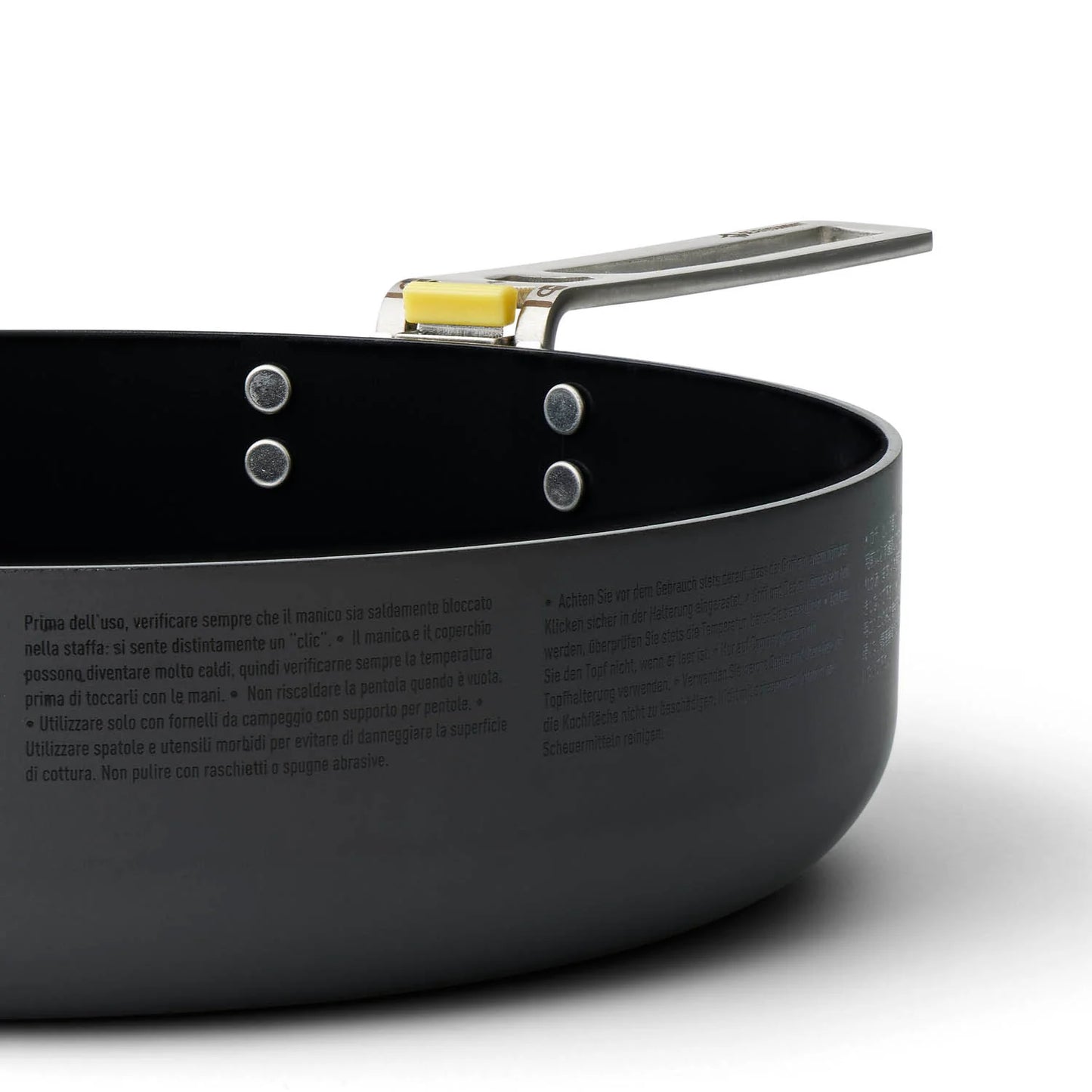 - The pan is constructed of a hard-anodised aluminium alloy for excellent heat transfer and a ceramic non-stick coating for easy cooking and clean-up