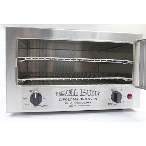 Fast Food takes on a new meaning with the Travel Buddy. This portable, lightweight, 12 volt oven can cook, bake and warm foods while you travel.
