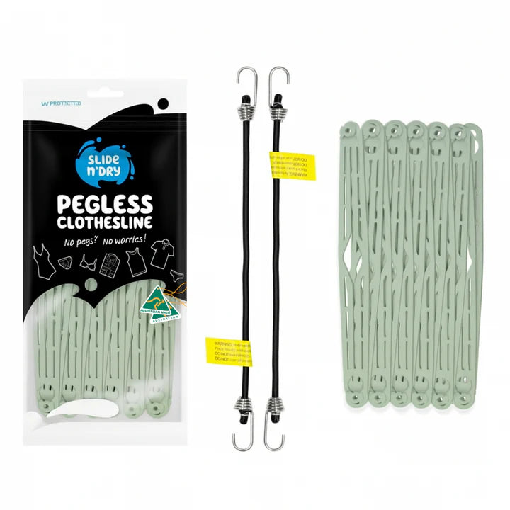 No Pegs? No Worries! The Slide n' Dry Pegless Clothesline really is a must-have item for your next holiday adventure. Perfect for caravanning, camping, hiking, cruises, hotels and backpacking.