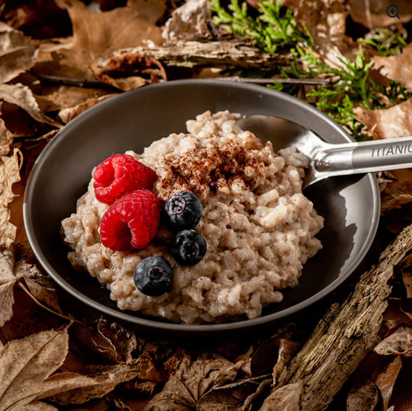 Our meals don't come with sides. For the Coconut Rice Pudding we suggest a side of berries.