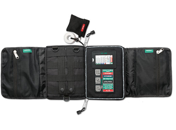 Inside your KIT, you will find a personal space section. It’s a meshed area with a zipper that allows you to include specific items or additional first aid contents suitable for your on-road adventure.