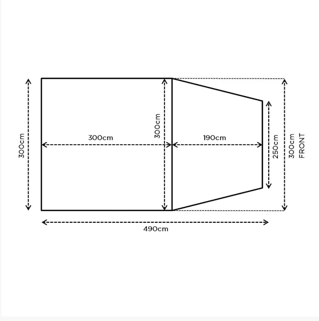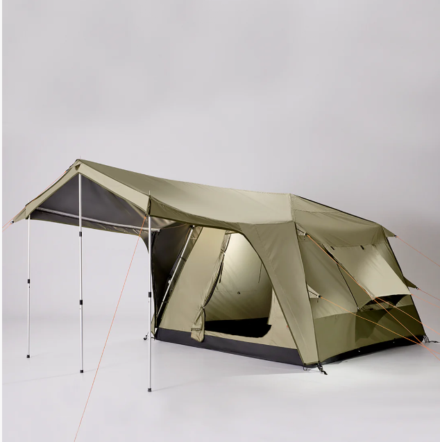 - Strong, integrated aluminium frame for ease of setup and pack down 3 pole awning to provide additional strength to the construction