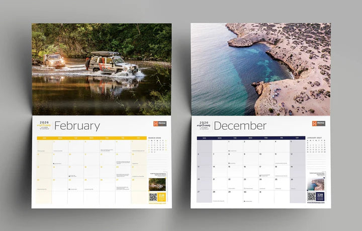 Each month features breathtaking images captured by Hema Maps contributors, along with a QR code linking to extra touring insights from the outback and off-road navigation experts. Use it as a “Big Lap” guide, a touring inspiration tool, or simply as a beautifully functional calendar.